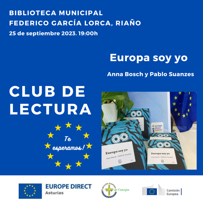 Esta tarde a las 19:00 nos reuniremos en la Biblioteca de Riaño, Langreo, para compartir con los miembros de su #CludeLectura impresiones sobre el ensayo #Europasoyyo de @annabosch y @Suanzes